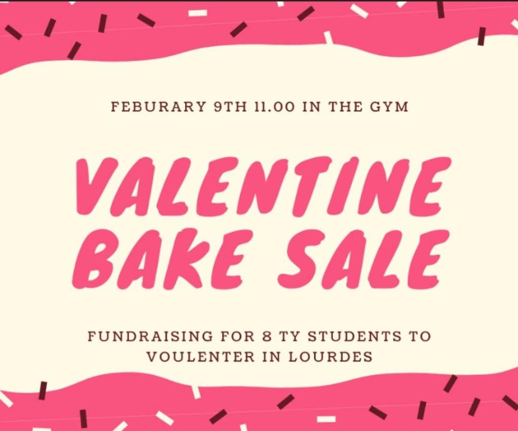 8 of our TY students are travelling to Lourdes this Easter to volunteer for the Irish Pilgrimage Trust. They will be hosting a bake sale tomorrow, Friday February 9th in the Gym at the 11am break in order to raise money for the trip. Any support would be greatly appreciated!
