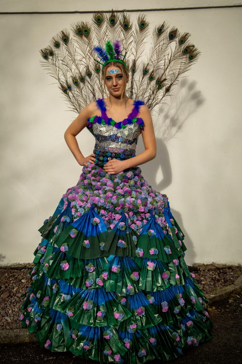 The final three designs for the Junk Kouture competition this year are: Peacock Princess by Emma, Daniel and Aisling, Catching Fire by Ines and Ema, and Antler Queen by Maria and Tighan. All entries photographed by Grace Naughton. A huge well done to all students involved, fingers crossed we progress to the next stage of the competition!