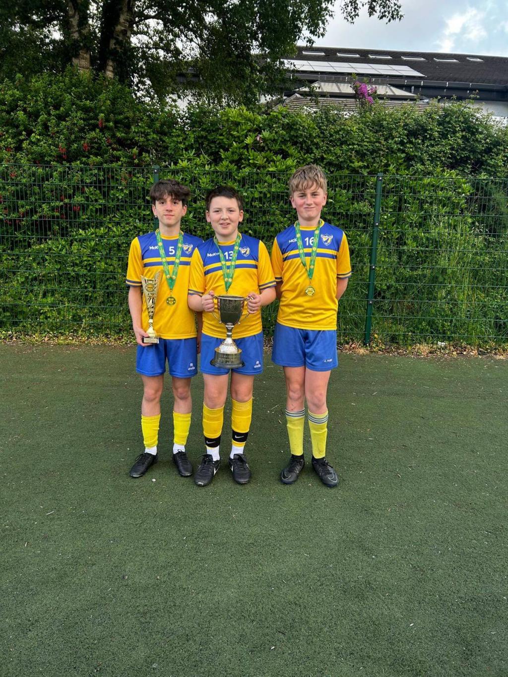 Congratulations to 1st years Iarla O Donovan, Jack Gillespie and Daithi O Sullivan, who were part of the Killorglin AFC u-13 team that secured the Kerry league title to go along with their Munster Cup trophy this season. Well done lads!