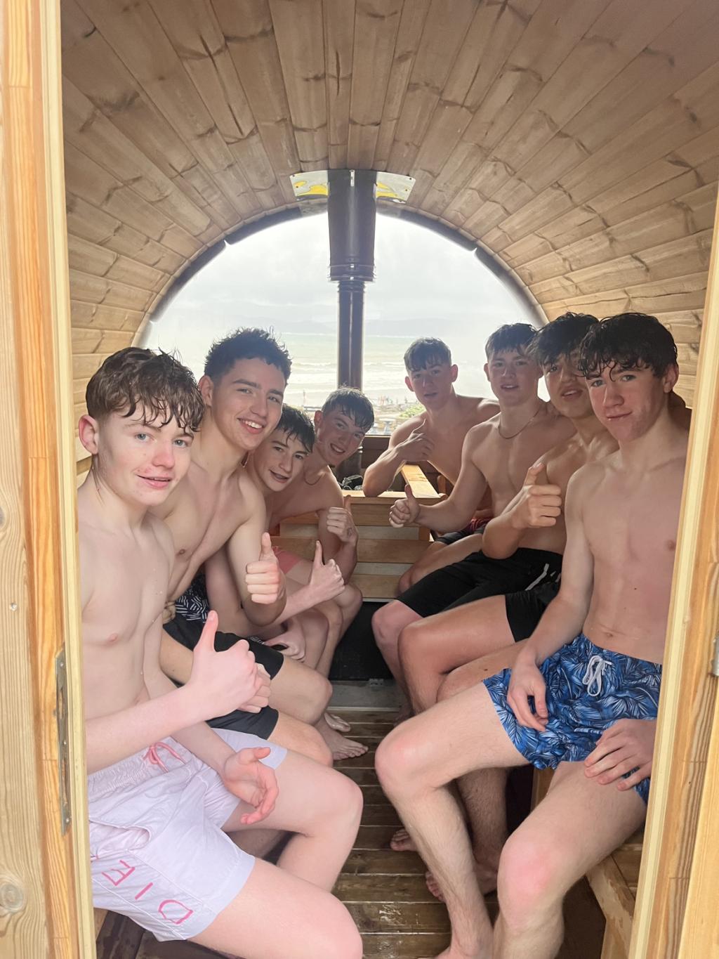 Following their last exam today our TYs bolted for Rossbeigh where they swam and then headed for Ross Point for a sauna, ice bath, scone and hot chocolate! Our thanks to Darran and his team for their hospitality.