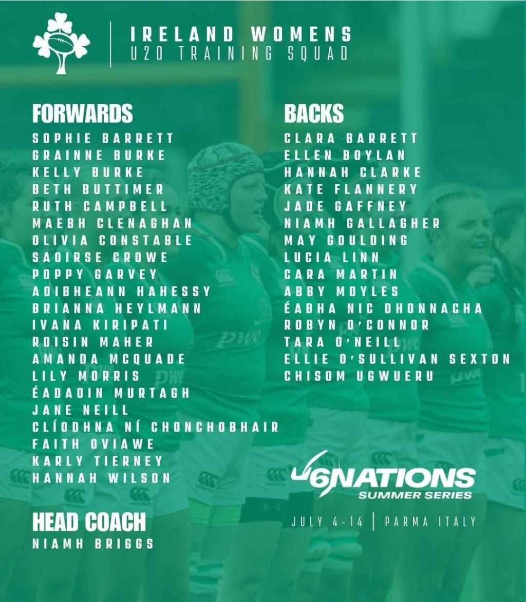 U-20 Women’s Six Nations Summer Series 4 July 2024 Best of luck to Lily Morris, who is among the replacements for the Irish U-20 Womens Six Nations Summer Series team in their opening game against England in Parma, Italy this evening. Go well Lily!
